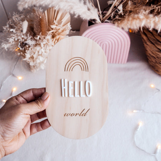 Hello World Baby Announcement Plaque (Nature Designs)