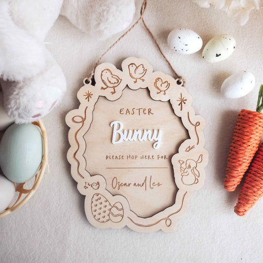 Personalised Easter Bunny Stop Here Sign - Easter Door Sign (Wavy)