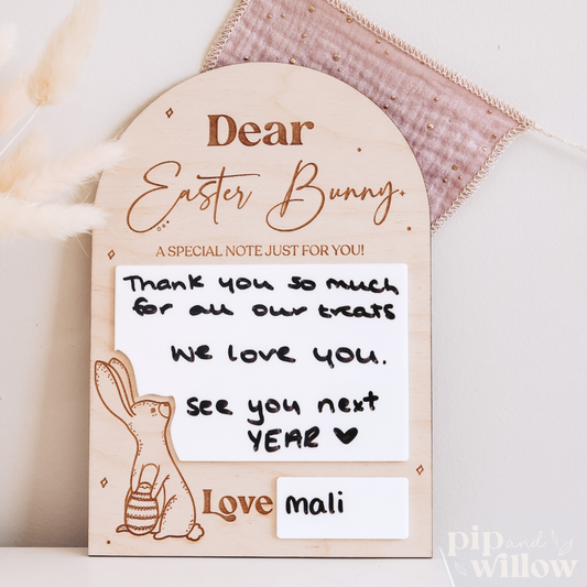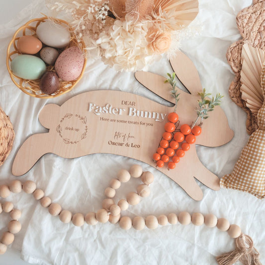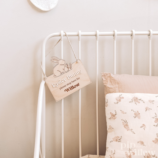 Create the wonder of Easter morning with personalised wooden Easter decorations designed to bring the magic to life. From Easter bunny doors and magic keys to bunny footprint stencils and arrival signs, these pieces help you create the “He came!” moment your little ones will never forget.