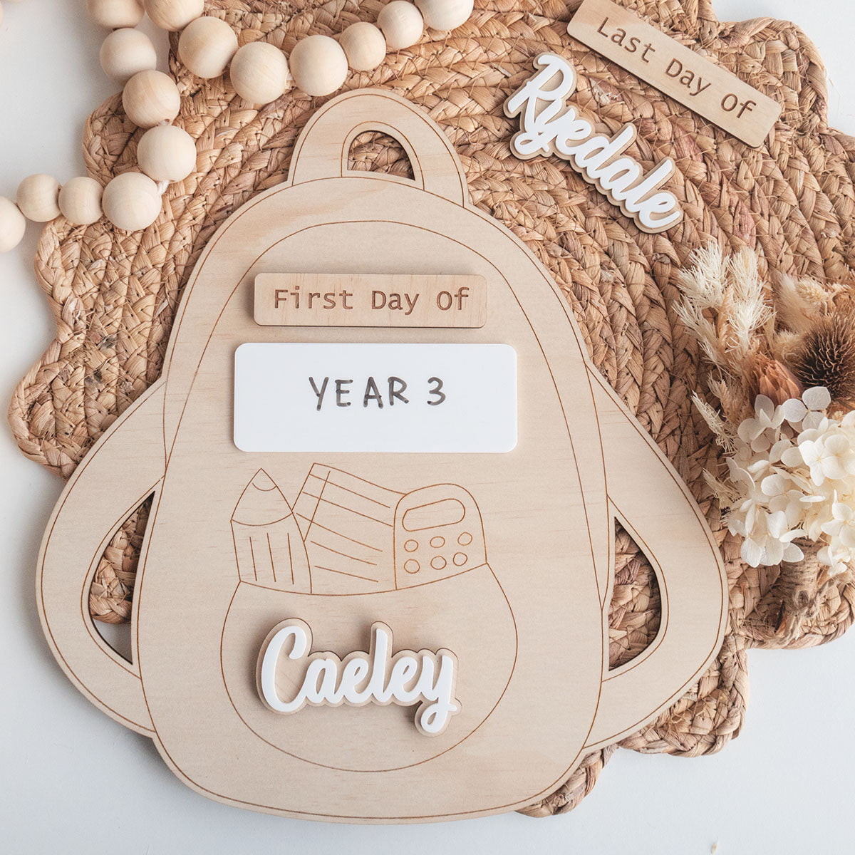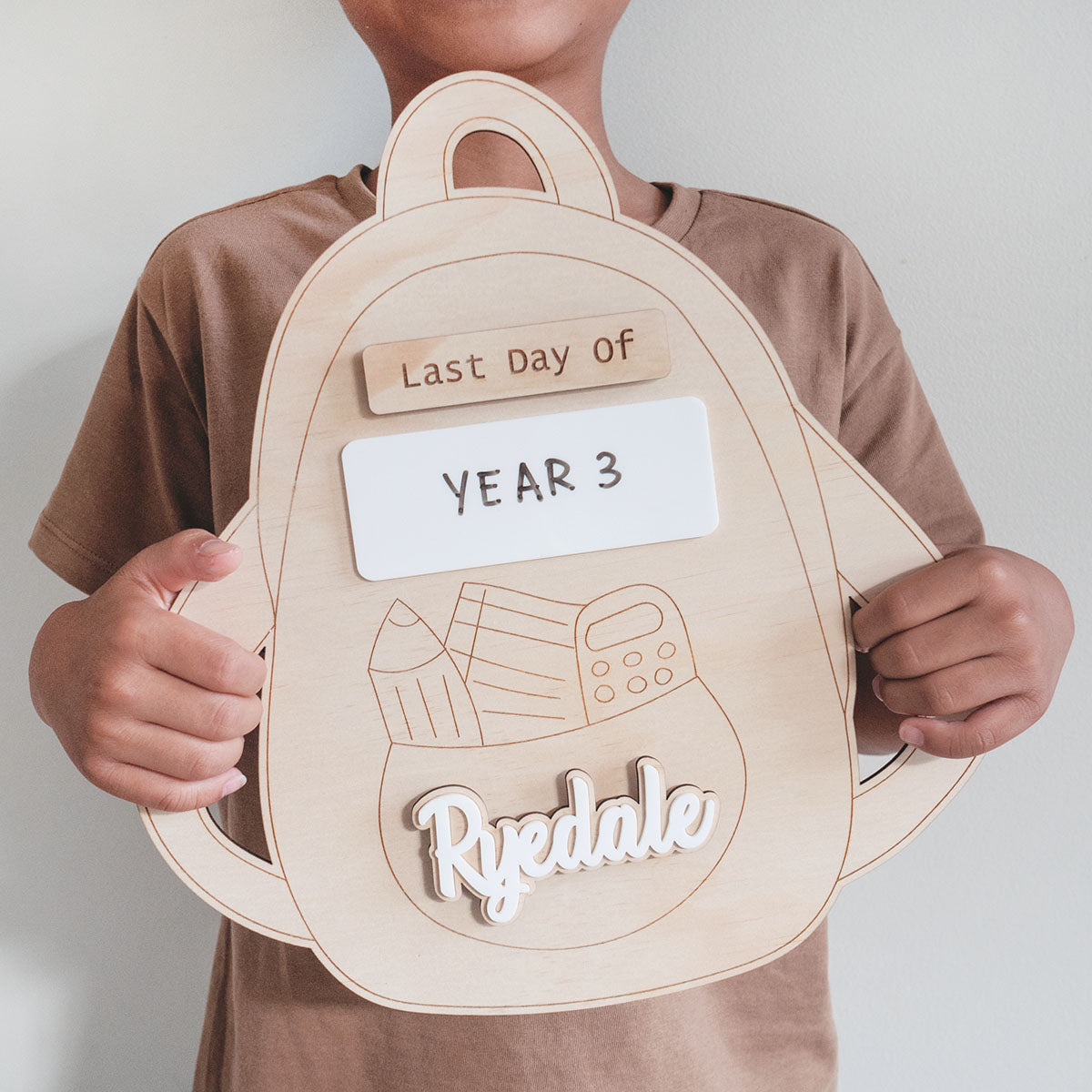 And the best part? Personalise the backpack first day board with all your children's names, eliminating the need for separate boards.