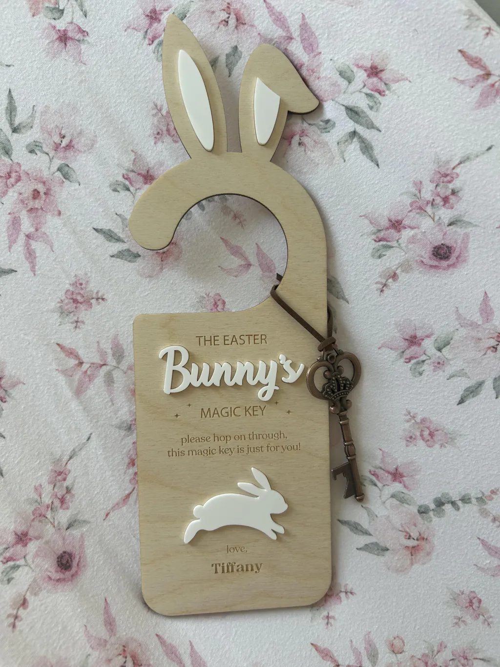Our Easter Door Hanger Bunny key is the perfect way to add a magical touch to your Easter Saturday 'eve' traditions. Simply leave the key out for The Easter Bunny, and he will come through the front door and leave some special treats.