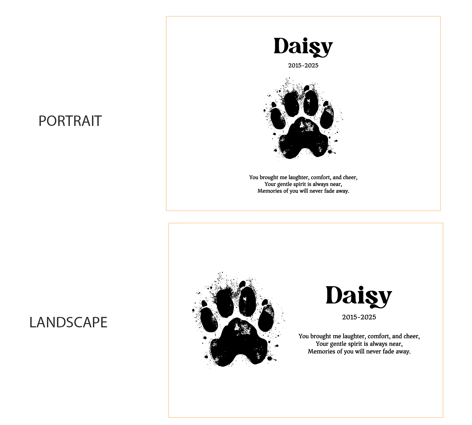 Collars, tags, favourite toys, photos, paw prints, sympathy cards, and keepsakes can now be stored together in one meaningful box. Each piece is engraved with your pet’s name and optional dates, making it a truly personal memorial.